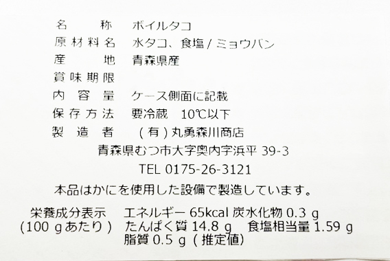 青森県下北産のボイル水ダコ足が入荷です。