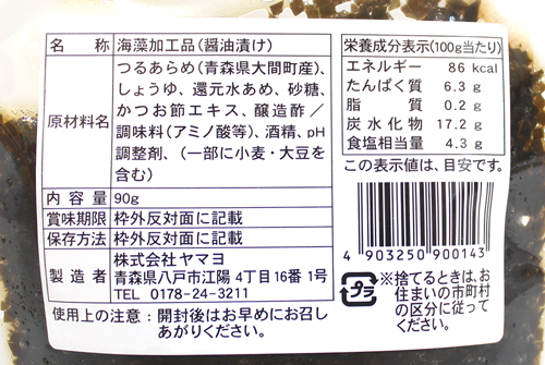 青森県大間産のつるあらめ昆布を使用。甘辛い出汁醤油に漬けました。ご飯のお供はもちろん、冷奴のトッピングなどにも適しております。